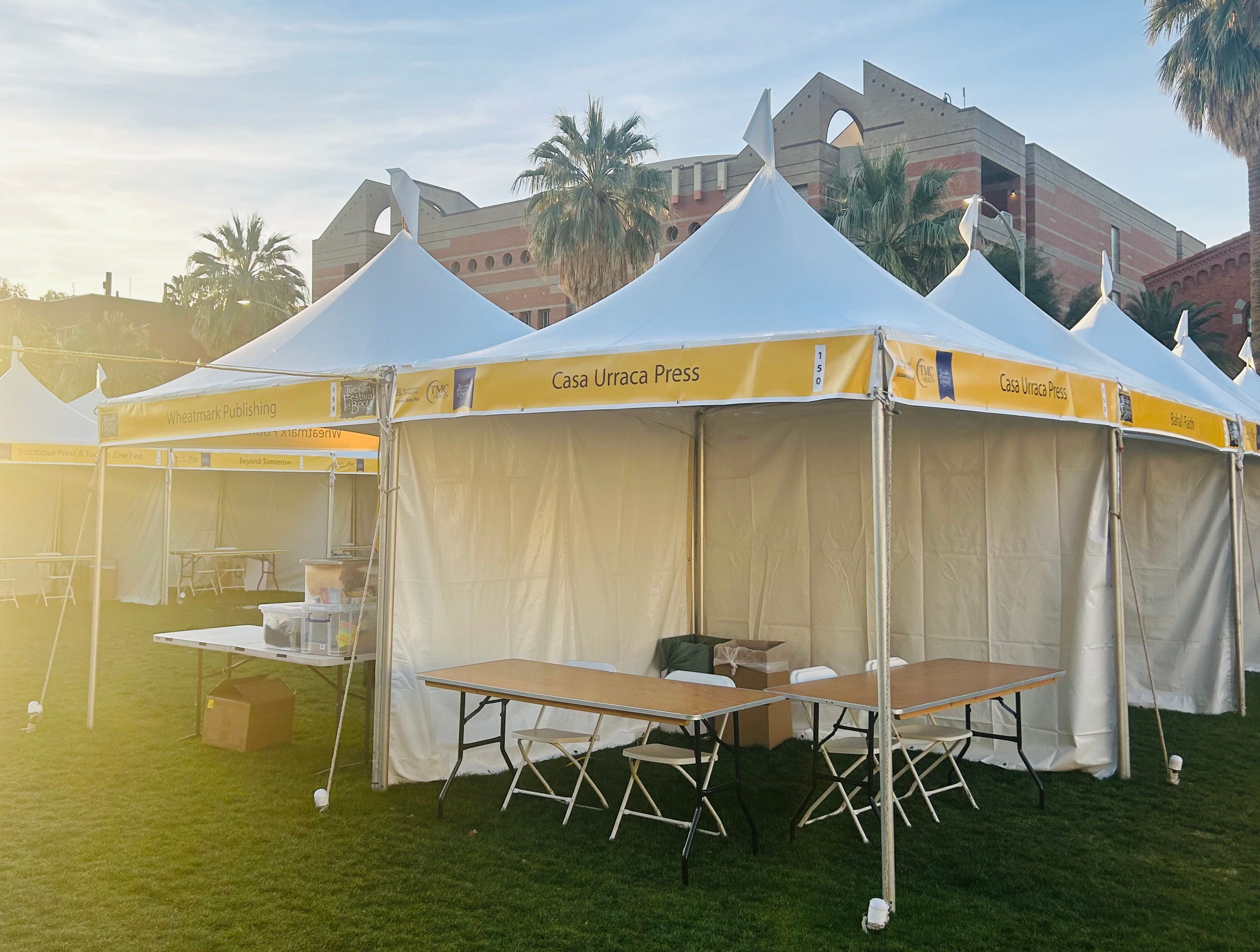 I cried because, after years of copy editing and being audited by the state, this press—my press—had made it. I cried because we belonged here, me and my authors and my little sister in her Casa Urraca-branded tee shirt. I cried because our tent was not adjacent to the roadway and we had to schlep all these boxes with all these books from here to there.